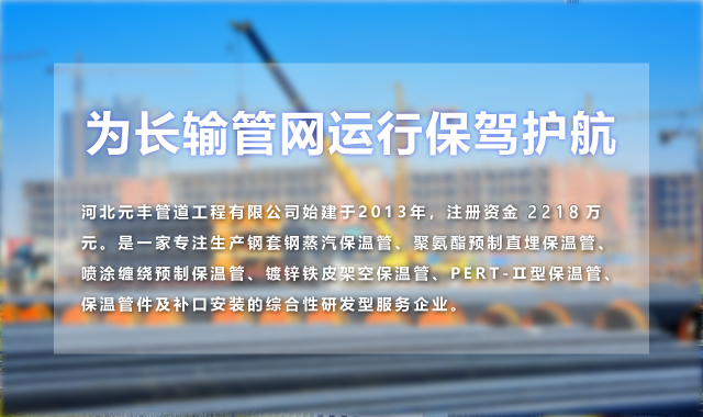 河北元豐管道工程有限公司是一家專注生產(chǎn)鋼套鋼蒸汽保溫管、聚氨酯預制直埋保溫管、噴涂纏繞預制保溫管、鍍鋅鐵皮架空保溫管、PERT-Ⅱ型保溫管、保溫管件及補口安裝的綜合性研發(fā)型服務企業(yè)。