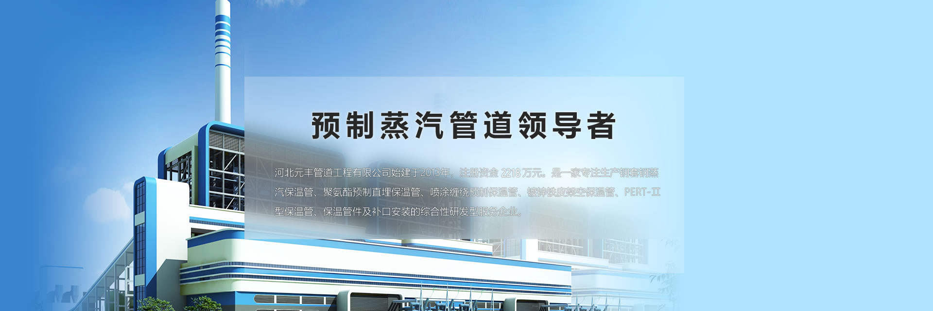 公司在河北、內(nèi)蒙、天津、遼寧均有生產(chǎn)基地,總占地面積500余畝。公司產(chǎn)品覆蓋中國以及蒙古、俄羅斯、中東、南非等20 多個國家和地區(qū),產(chǎn)品主要應用于高溫蒸汽輸送、集中供熱、集中供冷等。